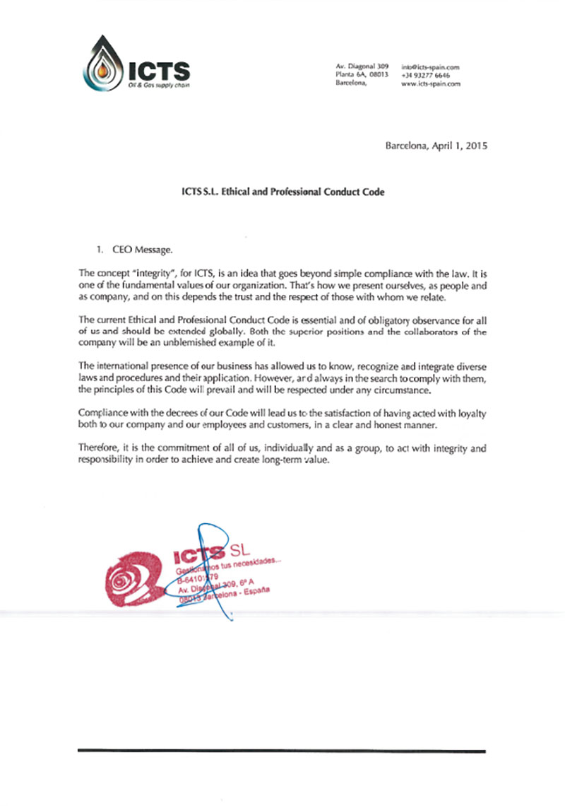 ICTS is committed to develop its worldwide activities in a strict, integral and respectful manner, always aware of the responsibility that it has acquired with the communities and groups with which it relates in the different areas where it is present.